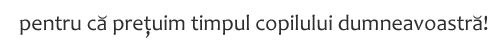 Pentru că preţuim timpul copilului dumneavoastră, vă aşteptăm să vă alăturaţi şi ne propunem următoarele: